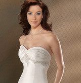 Simple strapless ball gown with sweetheart neckline, pleated bust, delicate lace trim embellish the underbust, natural waist, full pick up skirt with chapel length train. This simple but elegant ball gown will be a best choice for those modest brides.